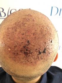 A week ago I had my second with 1000 grafts from the donor for the forehead and 1100 grafts from the beard for the tonsure.