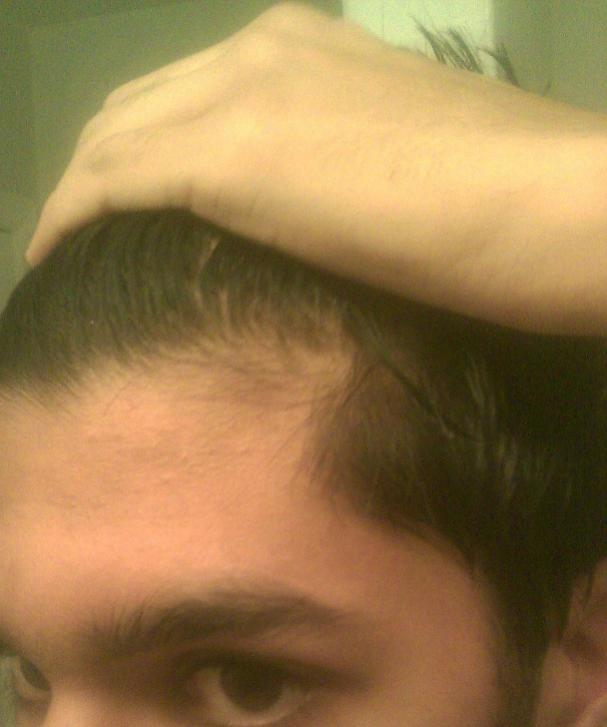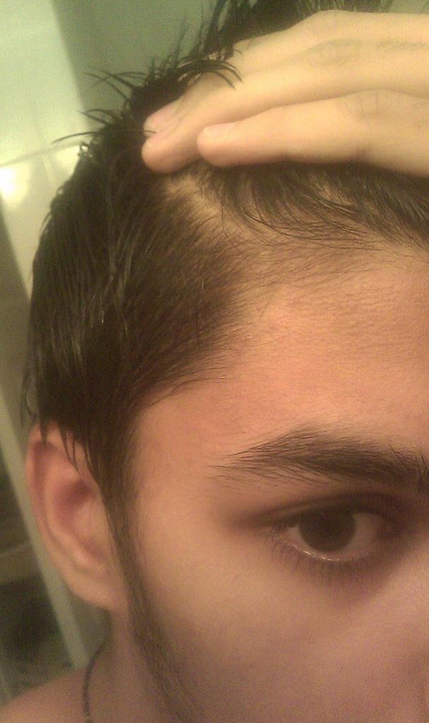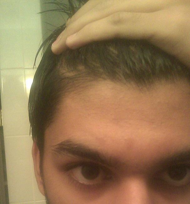 But over the past couple of months I've realized I can see my scalp through my hair in places I don't remember being able to do so in the past. Maybe it's just in my head - but I'm convinced that this is the case. Mostly around the "parts" in my hair: where the sides meet the top. When I'm in the shower, I lose about 5-15 hairs, which is normal (I think). And throughout the day, i would estimate maybe another 25-50?
