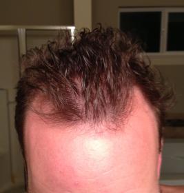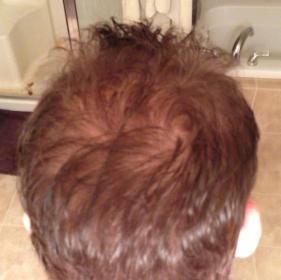 I took some pics, the ones where it looks bad are just out of the shower with a light towel off on the hair. The one that doesn't look to bad is after it dried after my rogaine treatment.