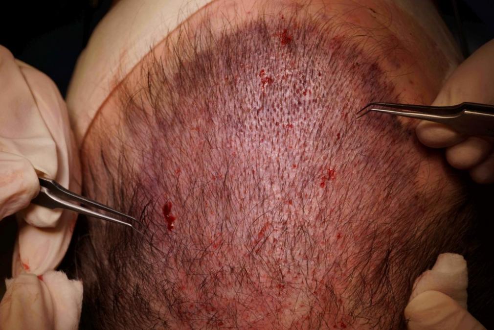 I had been given pre and post procedure instructions and followed them carefully. I was told to expect some pain for the first 48 hours but I personally had no pain to speak of after the first 24 hours and no complications whatsoever. I did, however, have an incident 4 days after the procedure when I went to a local supermarket. I had been supplied with a hat to wear after my procedure to hide the initial scabs, redness etc but I heal quite quickly so even after 4 days there wasn’t too much evidence and you could hardly notice the staples in the donor site (I used 2 mirrors to check first). So, I went out without the hat and was crouched down in the supermarket looking at some items on a lower shelf. An elderly gent appeared next to me, told me he couldn’t see an assistant and asked if I knew where the jars of olives were. I looked up and told him they were just behind him. He looked round and said “Ah, yes” and I turned my attention back to the lower shelf. As I did so, he said “Thanks, son” and reinforced his thanks by rubbing/scratching the top of my head!!! I inwardly grimaced and ducked down but I knew he had broken at least 2 of the scabs as I could soon feel blood trickling down both sides of my face. I went straight to the toilet to examine the damage. The bleeding stopped almost immediately but I didn’t want to take any chances so I went straight home, cleaned the affected areas, had a very gentle shampoo and rinse and applied some antiseptic cream. I only mention this as a warning to others. I know it was a freak occurrence but it just shows what can happen. Next time I will be fully stocked up with provisions and keep away from the general public for much longer!