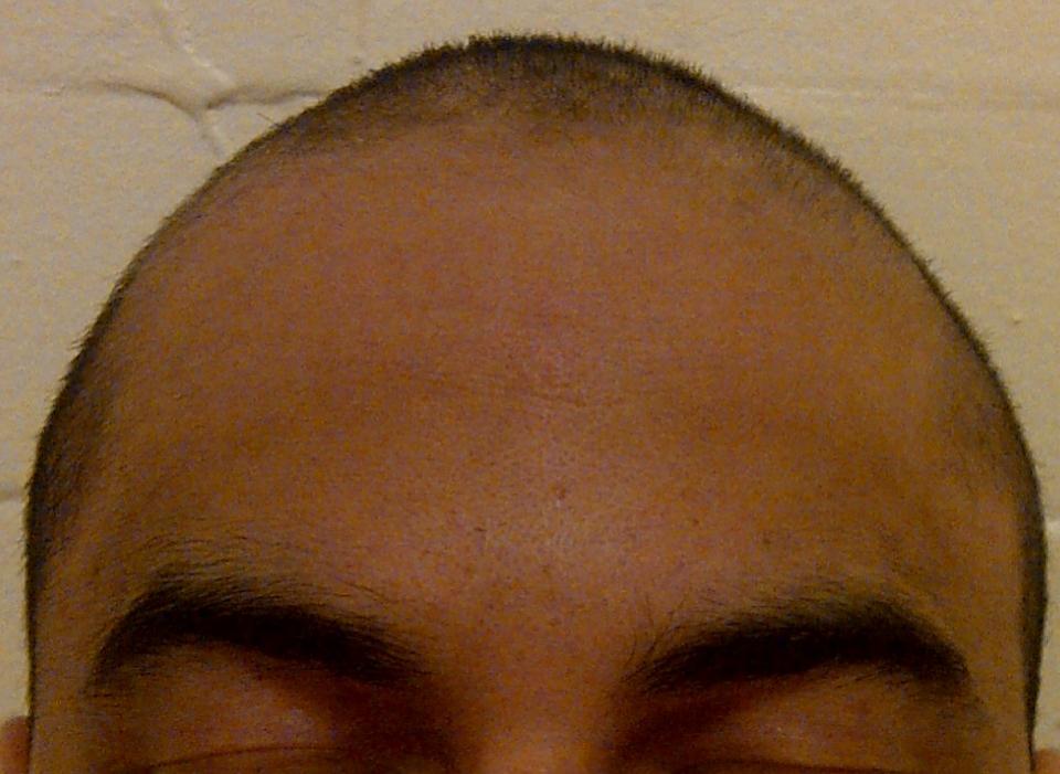Here are before and after pictures where you can see that although my hairline has improved and has became thicker, also hair regrowth is occurring, you can see my eyebrows are much thicker and bushier. Both are with same hair cut, #1 all over.