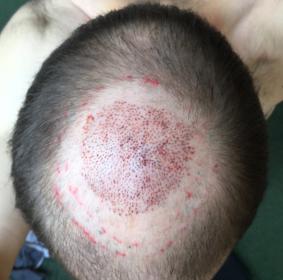 Then was made to lie back on belly for nurses to start putting more grafts in, half way through i started to feel the pain! It was a stining itchy burning burning on vertax area , it was very tender, i asked for a painkiller and more local annanthiesa.