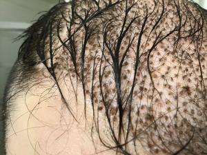 Hey there, I'm 10 days post-op and the scabs in the donor area have pretty much all come off, but in the recipient area they're still firmly attached. Is this normal? Also is that yellowish/golden color of the scabs normal? I had 2,000 grafts but judging by the density seems I'm gonna need a good amount more in the future.