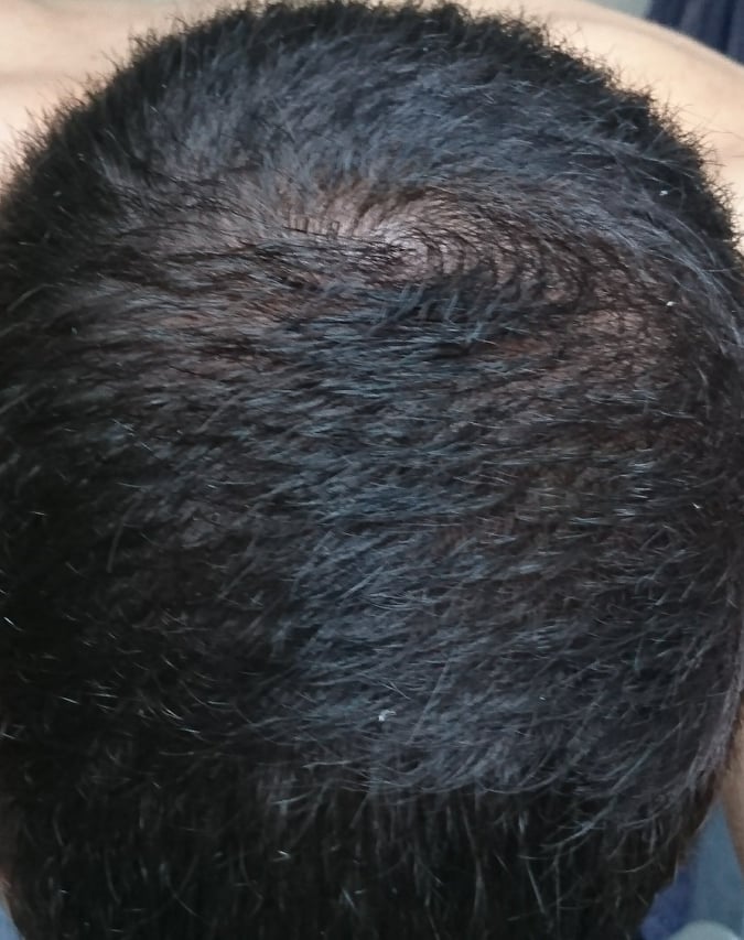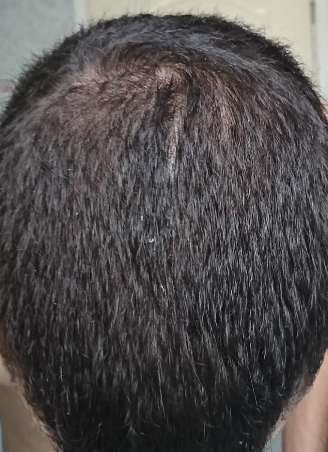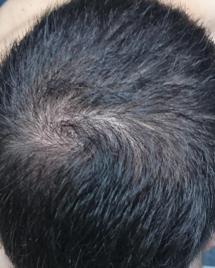 Same here.My hair is still short and there always was a parting point right next to my crown swirl. However i have never checked about the whole app linked crown which seems to be a slight vision of skin when i take a close photo with the flashlight on or at a bright light.Comment