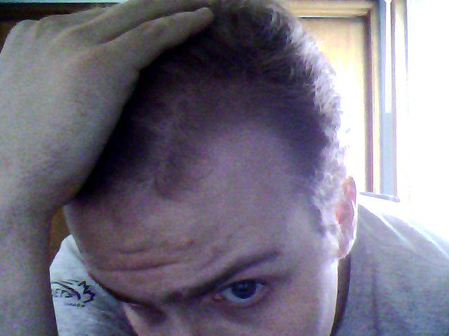 To help you guys understand my situation, I've attached two pictures of my hairline. "Hairline" is the thinned area, "Hairline2" is the other side of my head, where the hair loss isn't so bad, for purposes of comparison. Ignore the dark spot in the thinned area, that's just a scab from banging my head at work recently.
