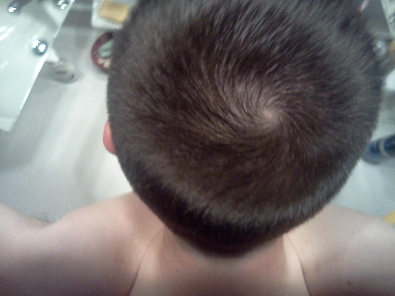 After the second month the itching and the dandruff went away. I also stopped having hair fall out any time i rubbed my head. I had my hair buzzed down so I could get a better look at my hair situation. I think the bald spot in the back is worse than when i started but maybe the balding is slowing down? I am also losing my hairline a bit at my right temple.