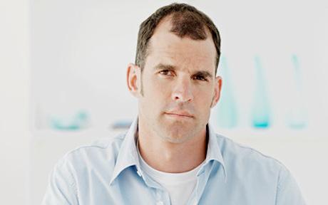 The photographs used were of the same man - except one was doctored to show him thinning on top and the other with a full head of hair.