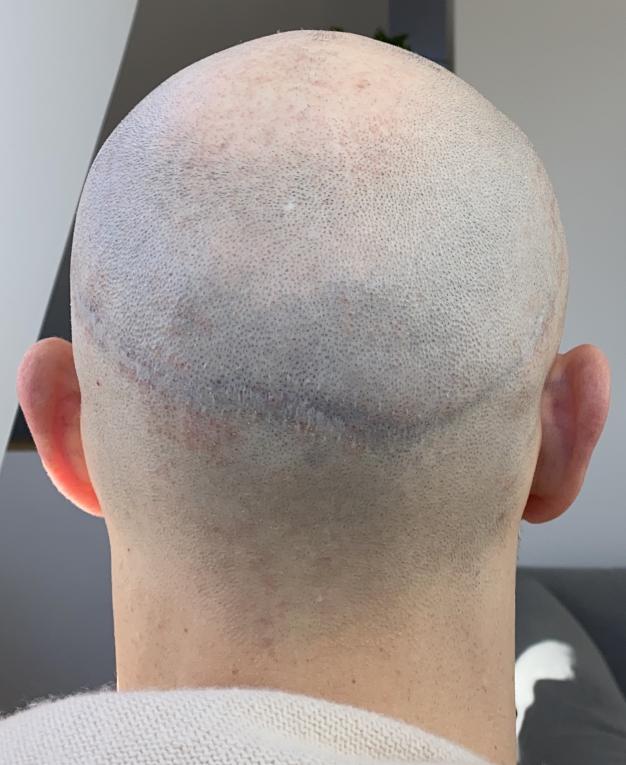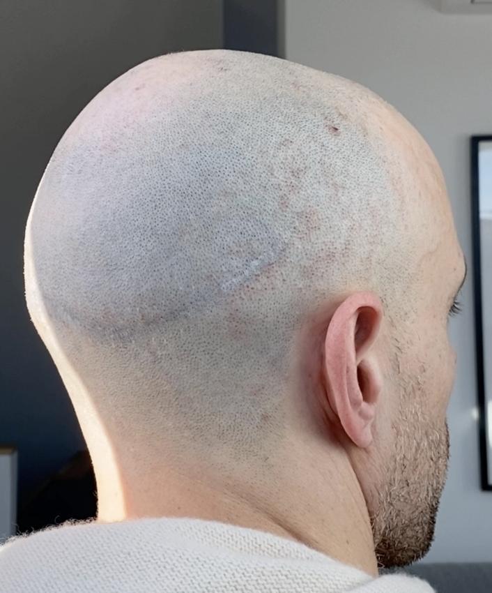 The attached pics are with a wet razor shave from Jan. 2025 (2 years post SMP procedure) - one of the images also shows my scar pre SMP with 5mm hair length. I am very unhappy with the SMP and feel the artist went much too dark and totally messed up the blending. After the 3rd and final session he assured me the ink would become lighter - 2 years later it still looks terrible.