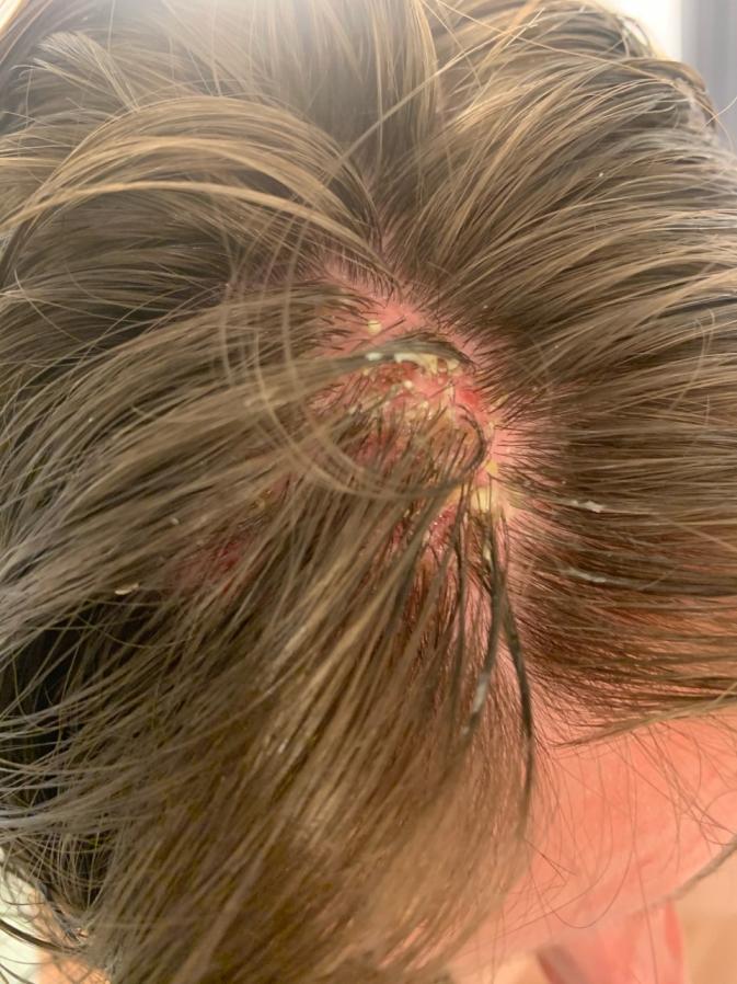Breanna is a 20-year-old. Sometime in November she started to have bumps and scabs on her head. Her dermatologist diagnosed her with psoriasis and gave her a steroid cream. Before we knew it, she had a goose egg size lump on her head that was painful and full of pus. She had a culture taken of the pus and it came back as a staph infection. By the end of about week 5, Breanna had been to an urgent care, the emergency room, her dermataologist at least 6 times, an infectious disease doctor and lastly at a professor at Henry Ford. During that month she was given 17 different prescriptions, none of them worked. Everyone continuing to tell her it is psoriasis that got infected. Due to the numerous medications and changing them constantly, she ended up with hives all over her body which just added to the stress we were all under at this point.