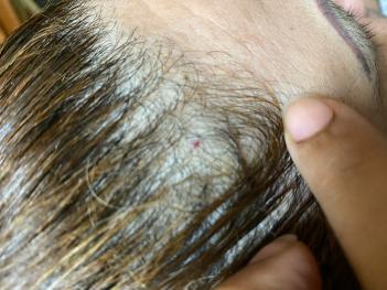 Today, as I applied the Minoxidil on her scalp I noticed some red spots on different areas where her hair has been falling out. I don't know if this is a sign of a disease or even if it's related to the loss of hair,