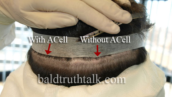 I'm sure you saw this post a while back that Hitzig provided but are you able to get closures like this when implementing acell? Like the line on the left? This was posted on the Thread titled "Acell, a Current Review of Applications in Hair Transplant Surgery".